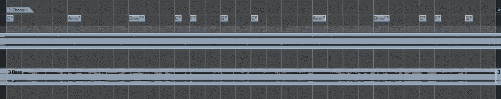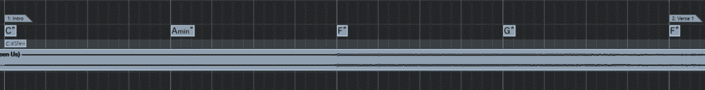 まず最初にざっくりと合わせたかったのですが、今回の楽曲はイントロもベースが途中から