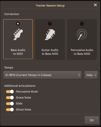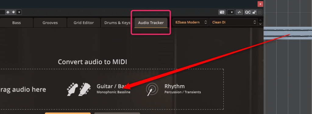 EZ BASSを立ち上げて、上部の『Audio Tracker』タブを選択して