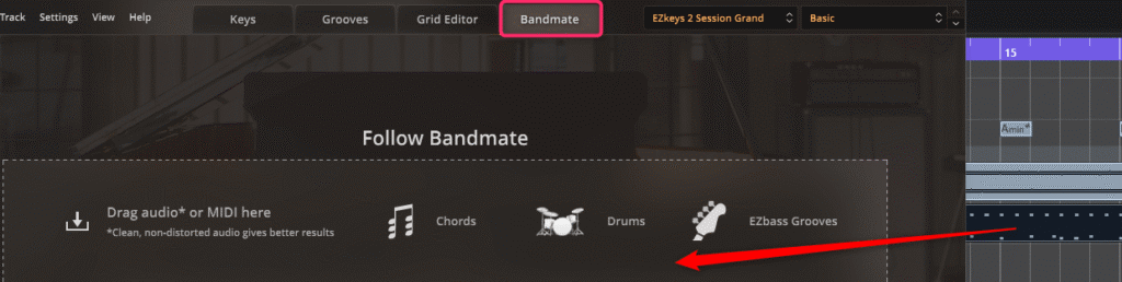 EZ DRUMMERの時と同様に上部の『Bandmate』からドラムフレーズを