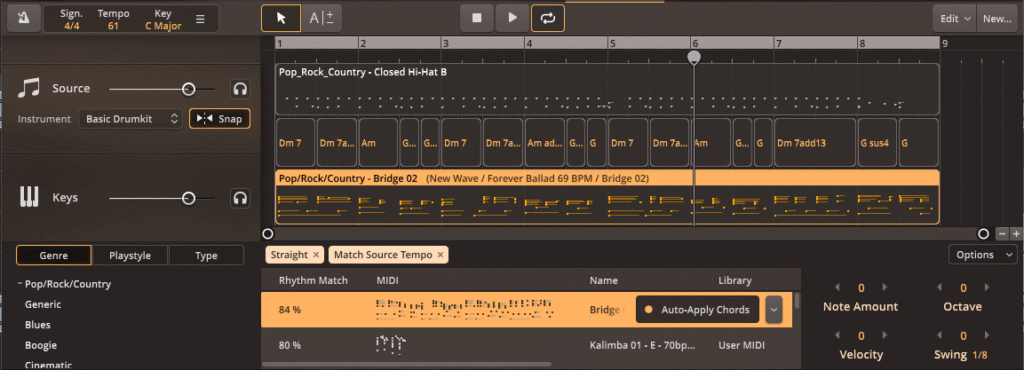 難しいベース演奏の知識がなくても、短時間でクオリティの高いベースラインを作成できる