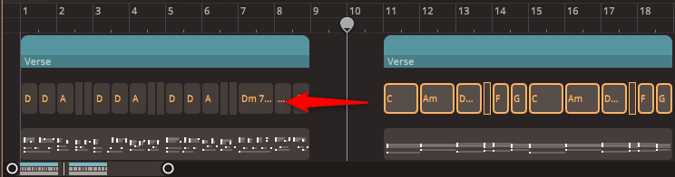 コード進行だけを選択して、左のフレーズにコード進行だけ、ドラッグ&ドロップします。
